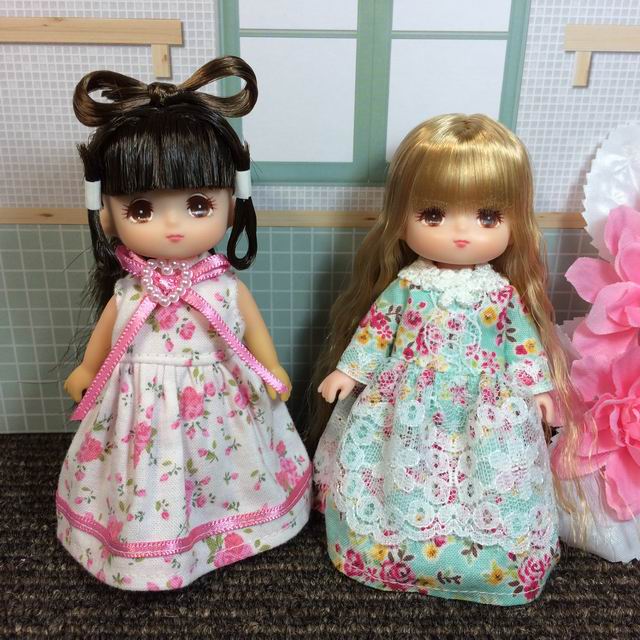 このキャッスル復刻版の初代リカちゃんのボディはピュアニーモXSよりも胸囲が少し大きくて、rurukoに作った自家製ドレスを着せてみるとほぼピチピチになるのですが、このドレスはまだ余裕があるほどです。
