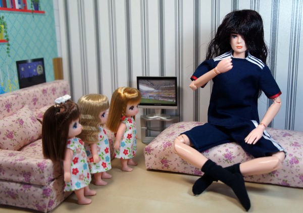 CGのリカちゃんの背景を向こう向きのカメラに回転して、うちのリカちゃんとコラボ。