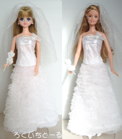 ストレートの超ロングヘアーなので、出来ればシンプルなドレスでご紹介しようと思い、しばらく押し入れで出番待ちしていたんですが、ちょうどバービーのドレスが500円でゲットできたので着せてみました。