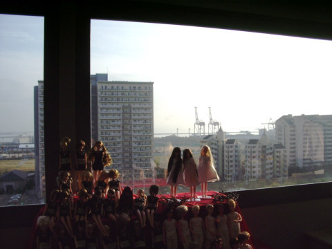 そのフレンドたちの後ろは南向きの窓で、かなたに海が見えます。