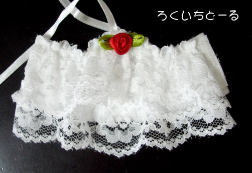 白いドレスはさらにモチーフをつけて首のヒモ30cmをつけます。