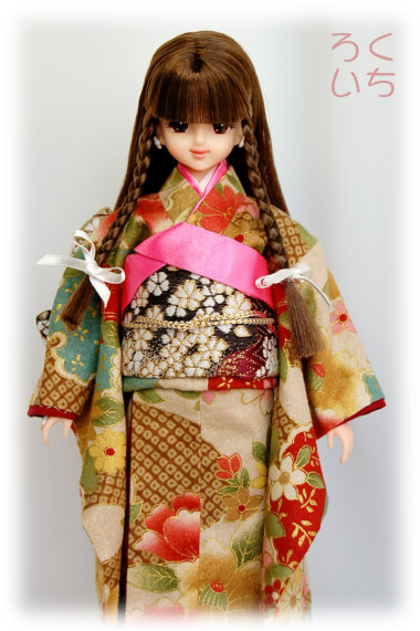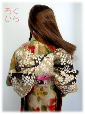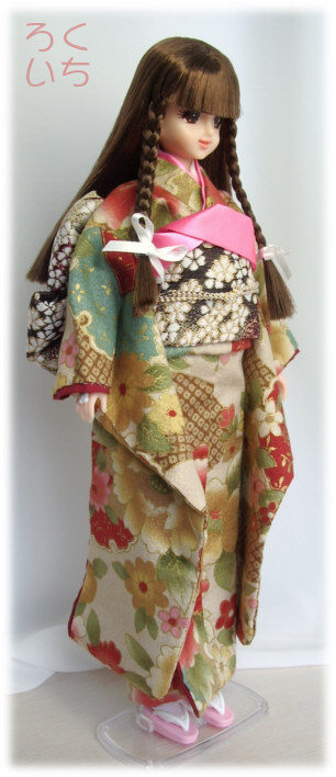 市販のタカラ製の着物は袖丈が長いので、そちらに近づけました。