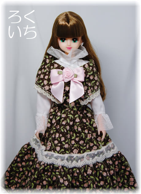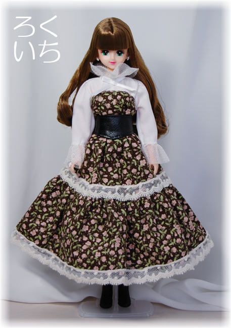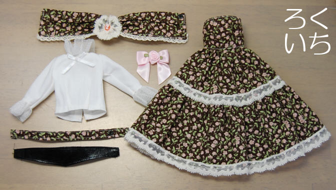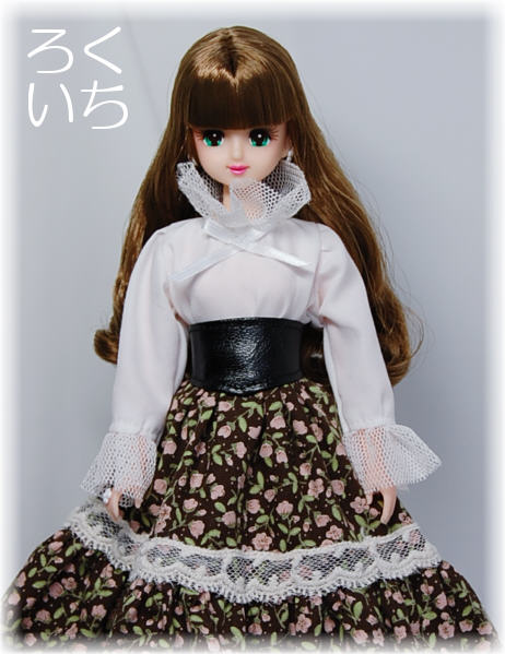 ブラウスのレース部分は普段、裏処理に使っている生地ですが、市販のドール服でレースとして使用してあるものに似ていたので転用。