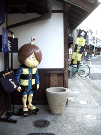 ここはゲゲゲグッズのお店で、等身大のぬりかべがいました。
