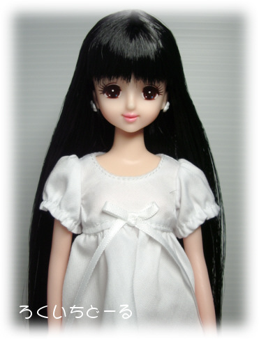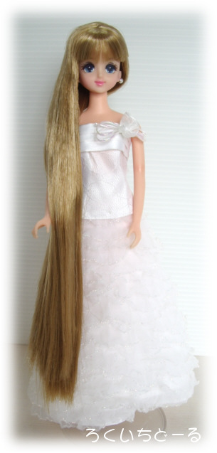 ストレートの超ロングヘアーなので、出来ればシンプルなドレスでご紹介しようと思い、しばらく押し入れで出番待ちしていたんですが、ちょうどバービーのドレスが500円でゲットできたので着せてみました。