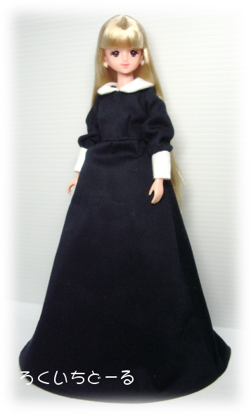 このドレスはオビツボディに合わすつもりだったので少し長さが中途半端になりました。最初の計画が大事ですね・・・しみじみ。