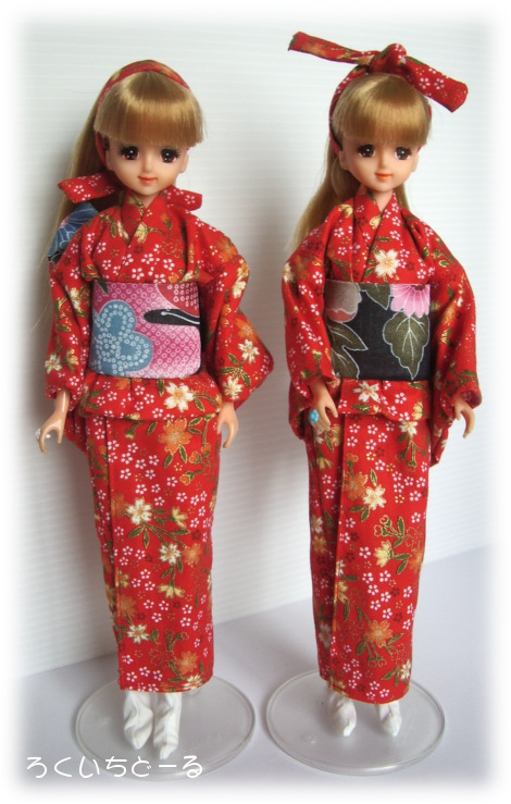 そのままの服ではくたびれているので、さっそく着物を2着作って着せたらすごく華やかでかわいくなりました。