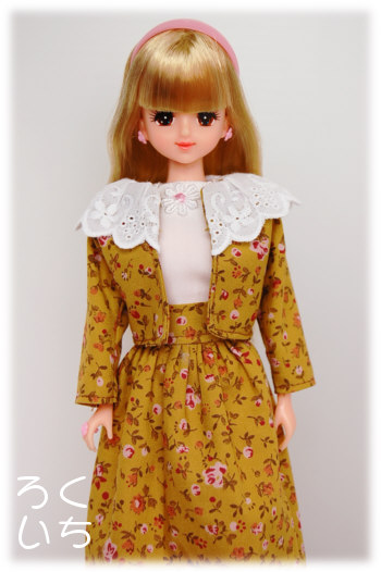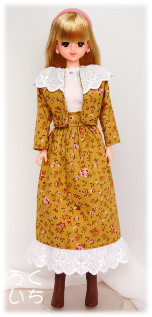 いつも行く手芸屋さんでパッチワーク用に巾が20センチで長さが2mという秋物花柄が売り出しになっていたので、ちょうどジェニーサイズにと買いました。(そんな感じで今までに買った布地が押し入れにいっぱいたまったままですが…汗)