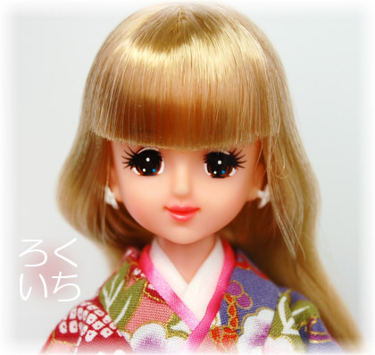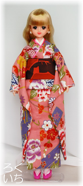 やっぱりブロンド旧ジェニーには渋いものよりもピンクや赤の着物が似合いますね。